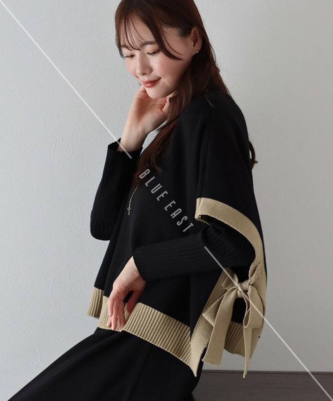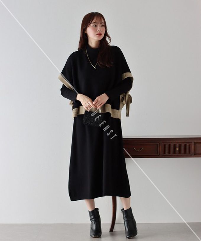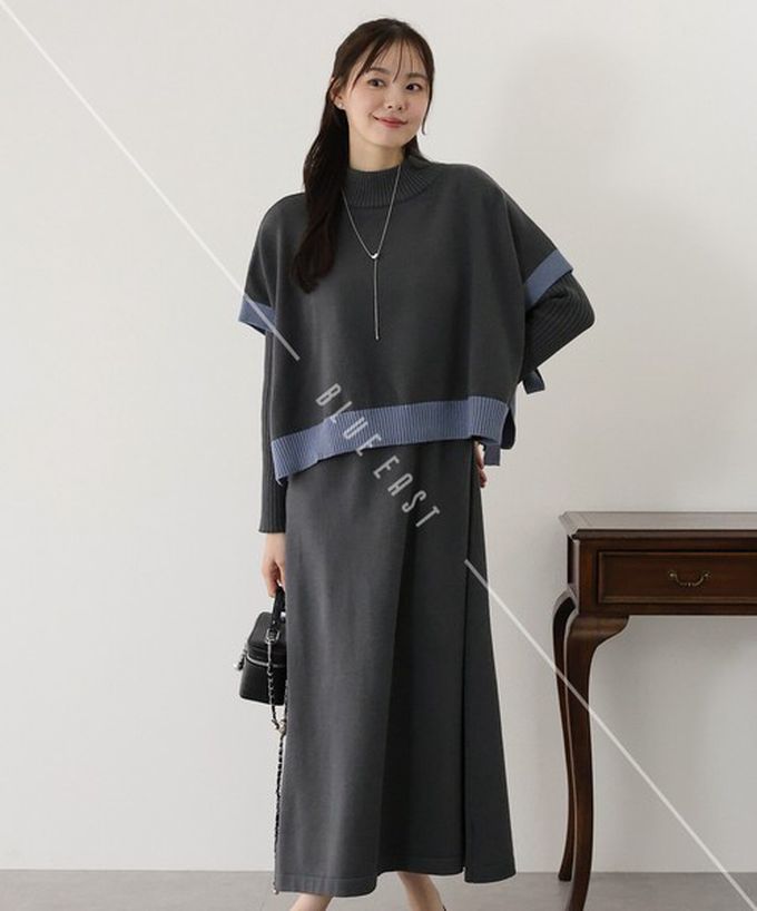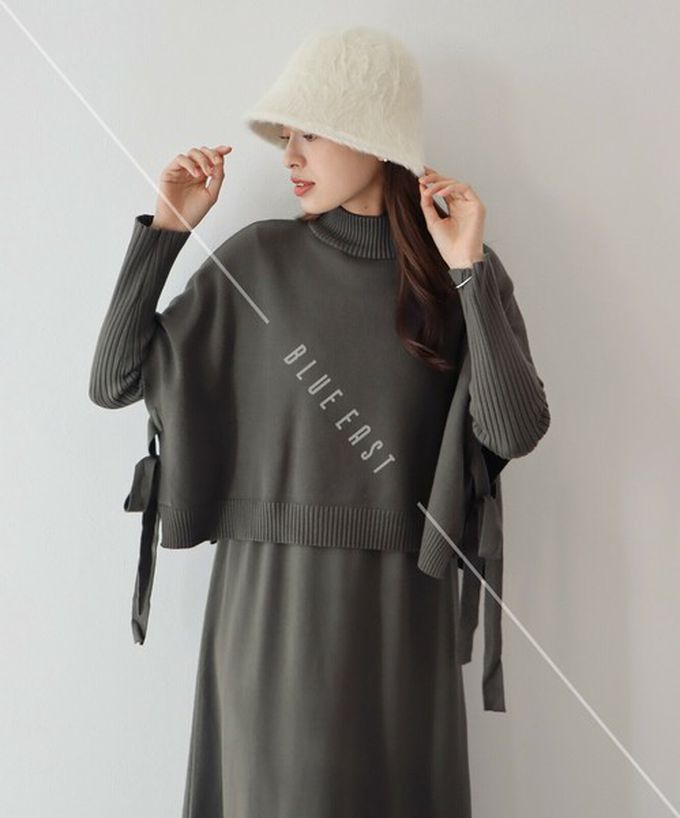 日本 BLUE EAST - [經典款]氣質針織斗篷長袖洋裝2件組(毛絨款)-米杏
