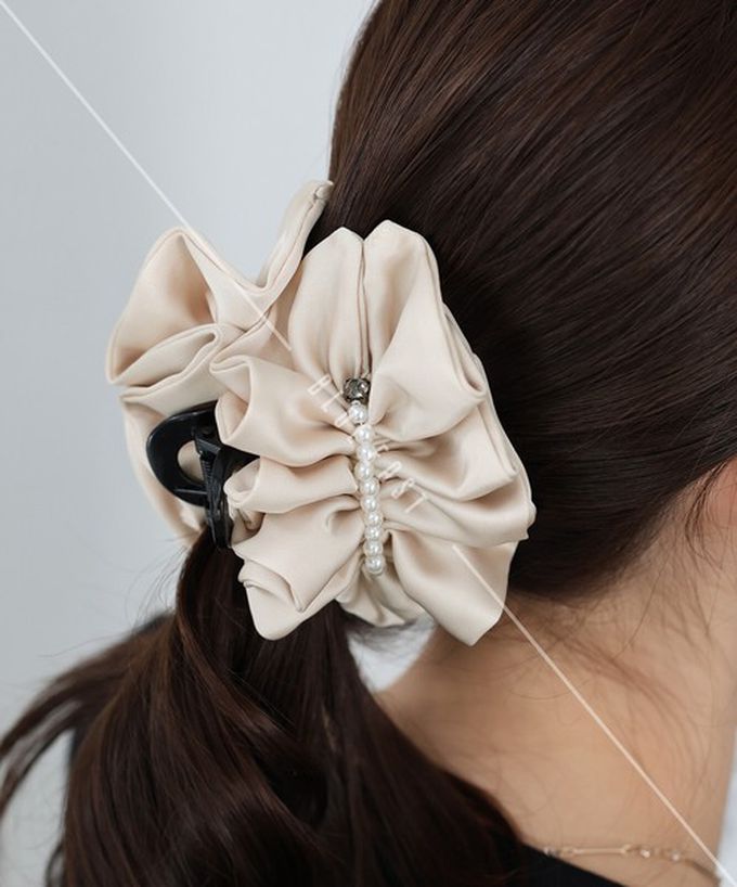 • 品名:韓國製 精緻緞面珍珠點綴皺摺抓夾
