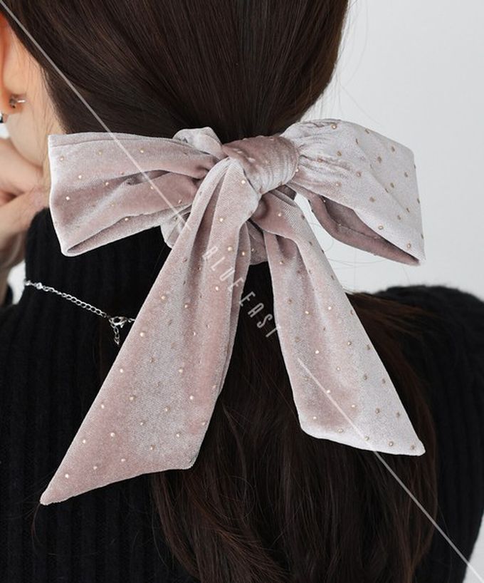 • 品名:韓國製 天鵝絨耀眼大蝴蝶結髮圈