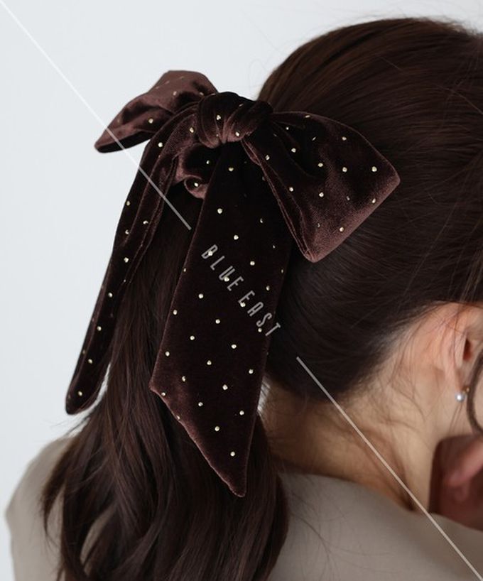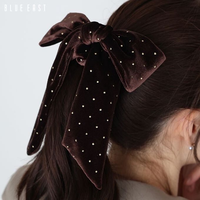 日本 BLUE EAST - 韓國製 天鵝絨耀眼大蝴蝶結髮圈-咖啡