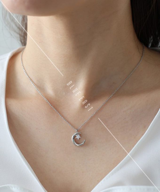 日本 BLUE EAST - 韓國製 甜美月亮星星造型項鍊-銀