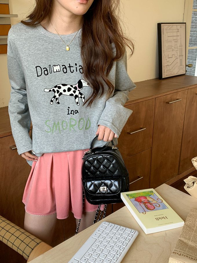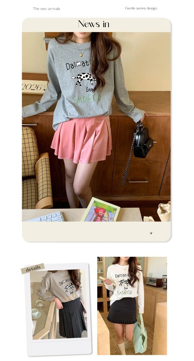3th Morning - 童趣斑點狗狗印花長袖上衣-淺灰 (F)