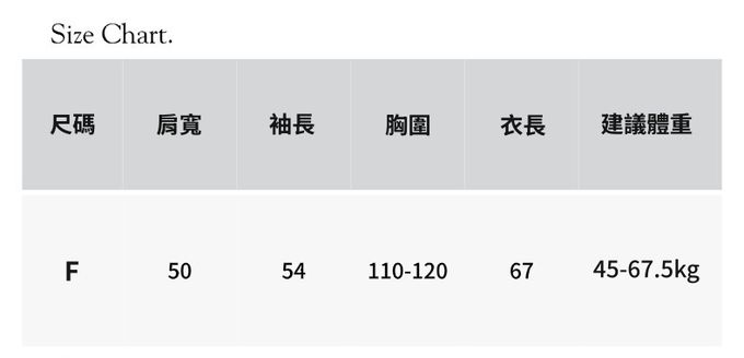 1. 尺寸表單位皆為公分(cm),商品皆為平鋪測量,實際尺寸會因布料彈性、水洗、測量起迄點等因素略有誤差,敬請諒解。