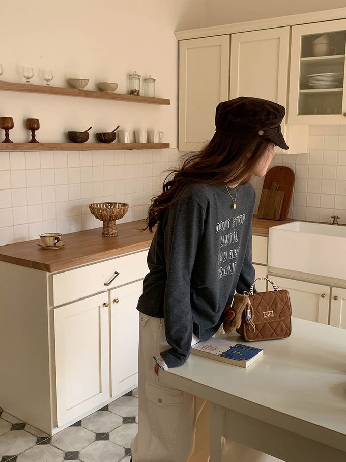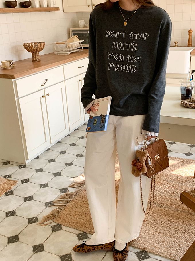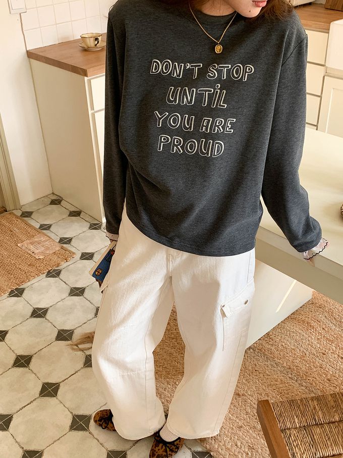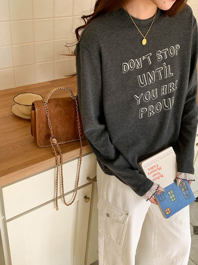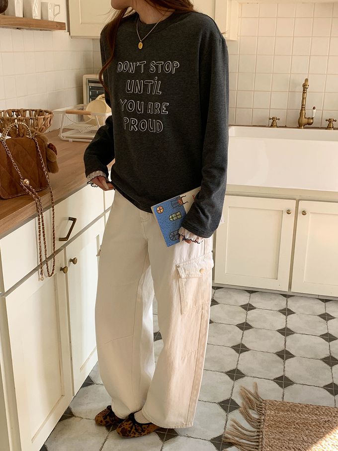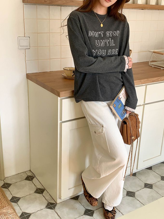 • 字母圖案x袖口蕾絲裝飾,穿出韓系休閒感