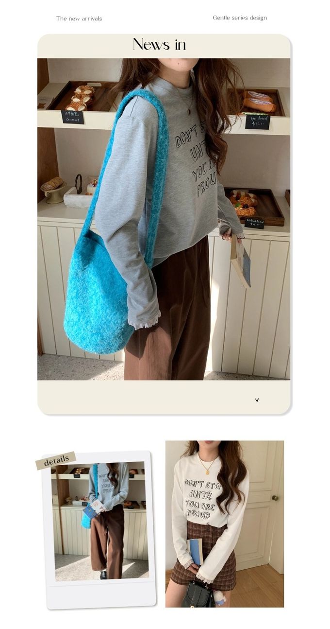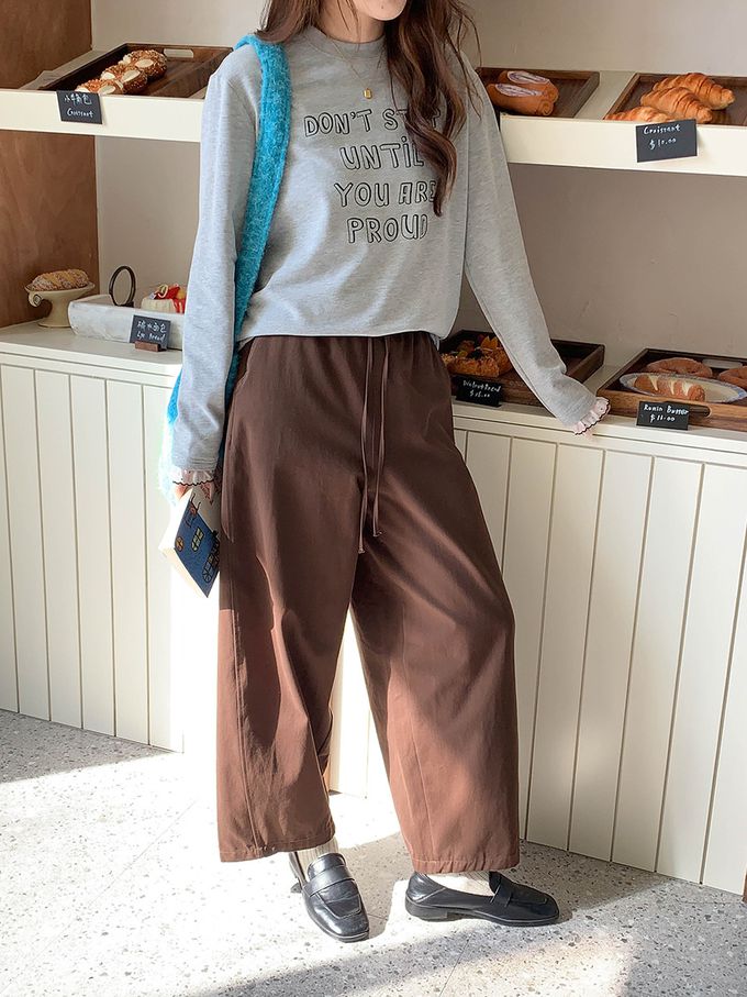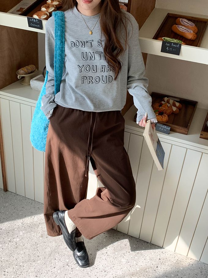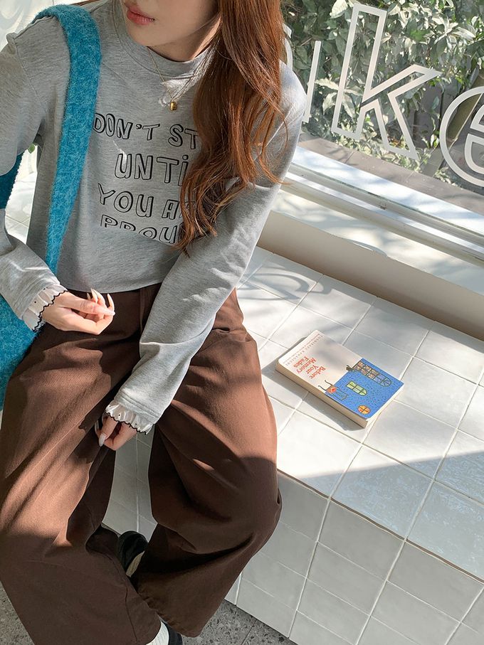 • 字母圖案x袖口蕾絲裝飾,穿出韓系休閒感