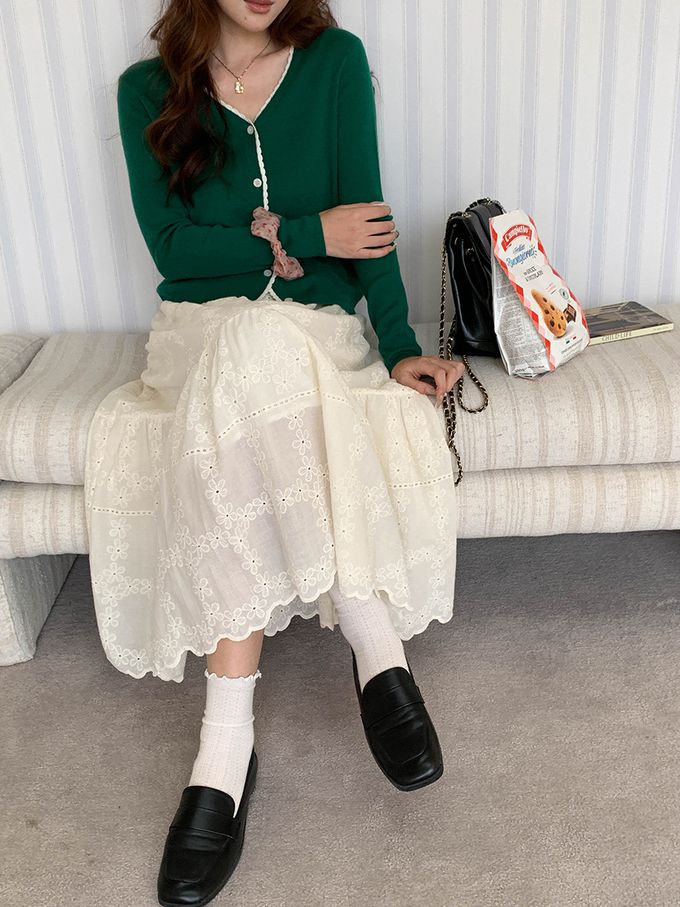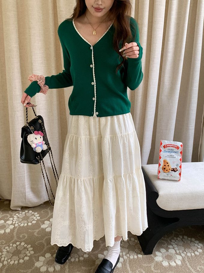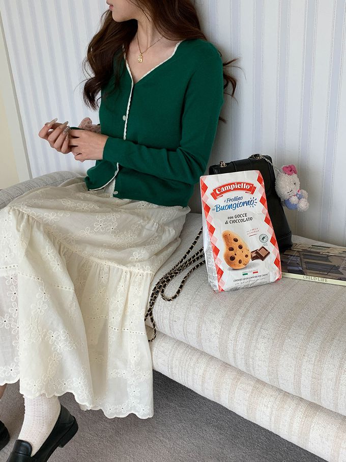 • v領設計x撞色鈎花,穿著更顯氣質