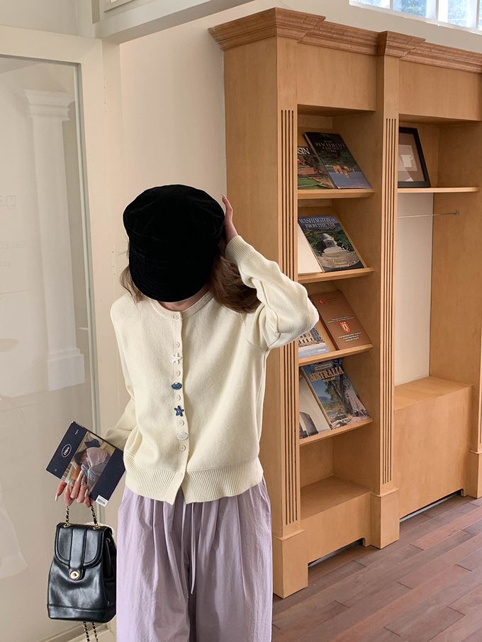 • 品名:造型海星貝殼鈕釦長袖針織外套