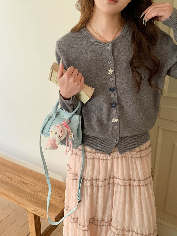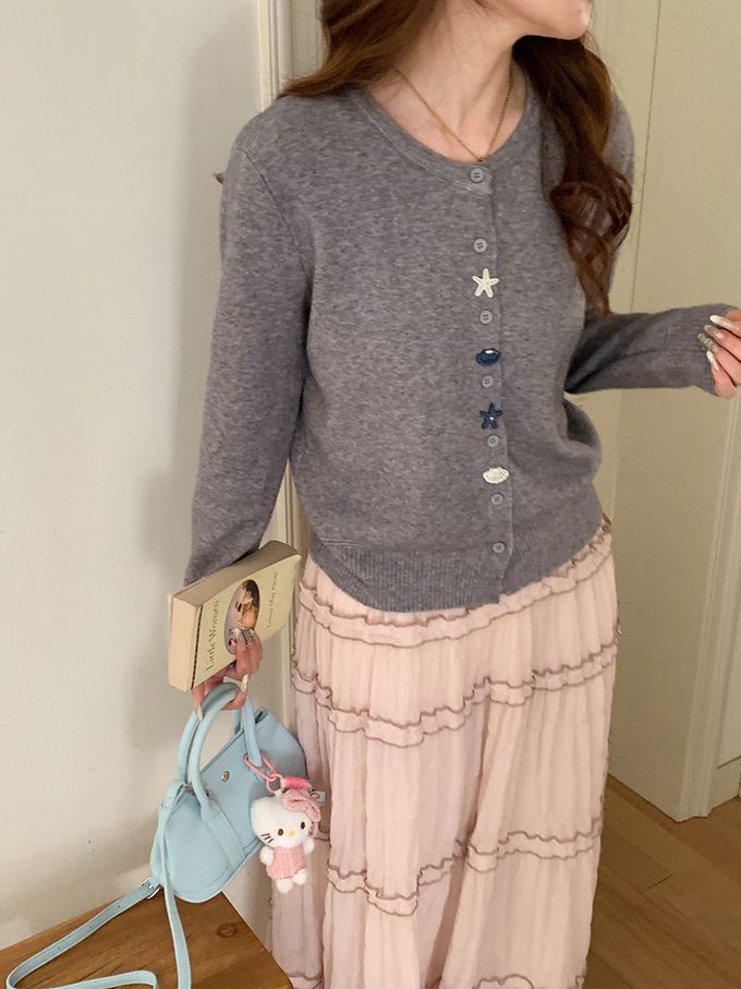 3th Morning - 造型海星貝殼鈕釦長袖針織外套-灰 (F)