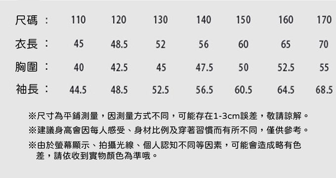 110cm、120cm、130cm、140cm、150cm、160cm、170cm