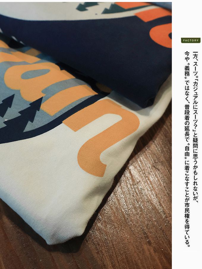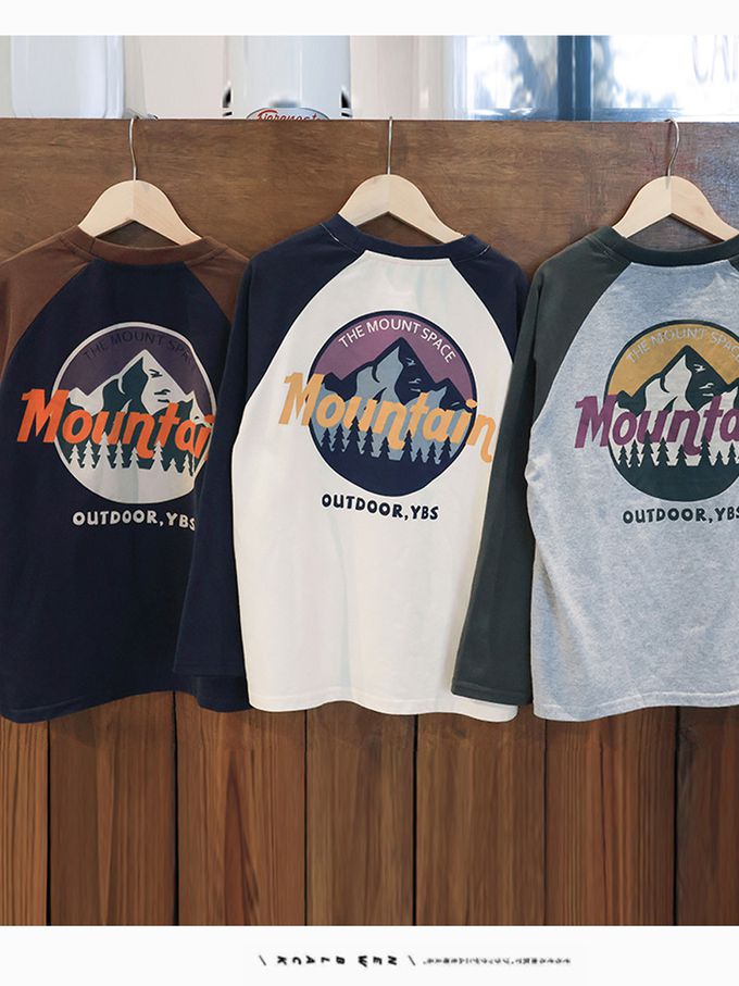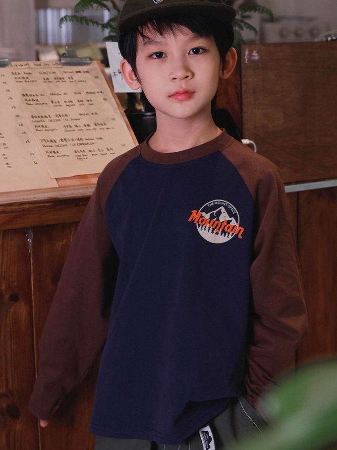 純棉圓領長袖上衣-Mountain-拼色藏青