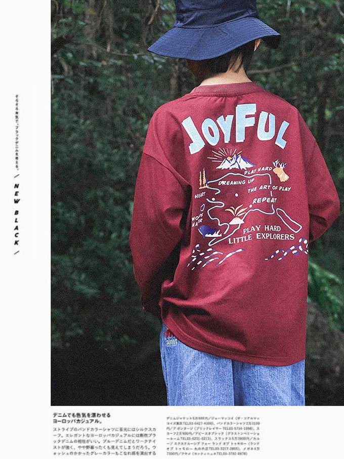 Y B S - 純棉圓領長袖上衣-一起去露營-拼袖黑