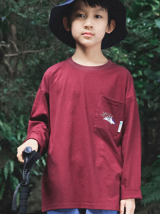 Y B S - 純棉圓領長袖上衣-山系繪畫-酒紅
