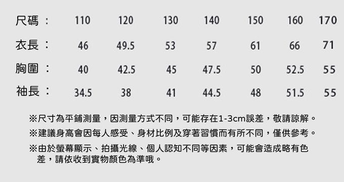 110cm、120cm、130cm、140cm、150cm、160cm、170cm