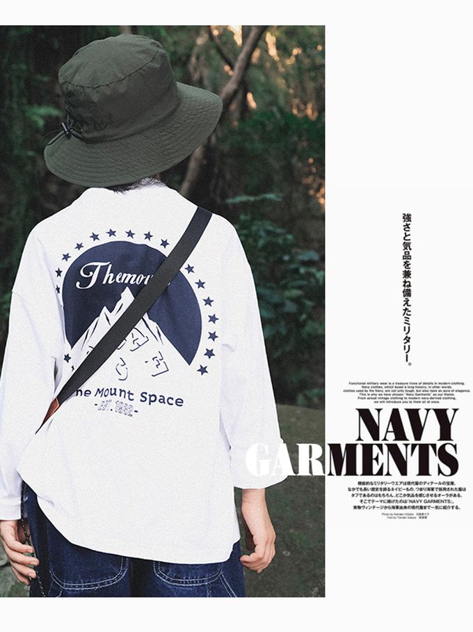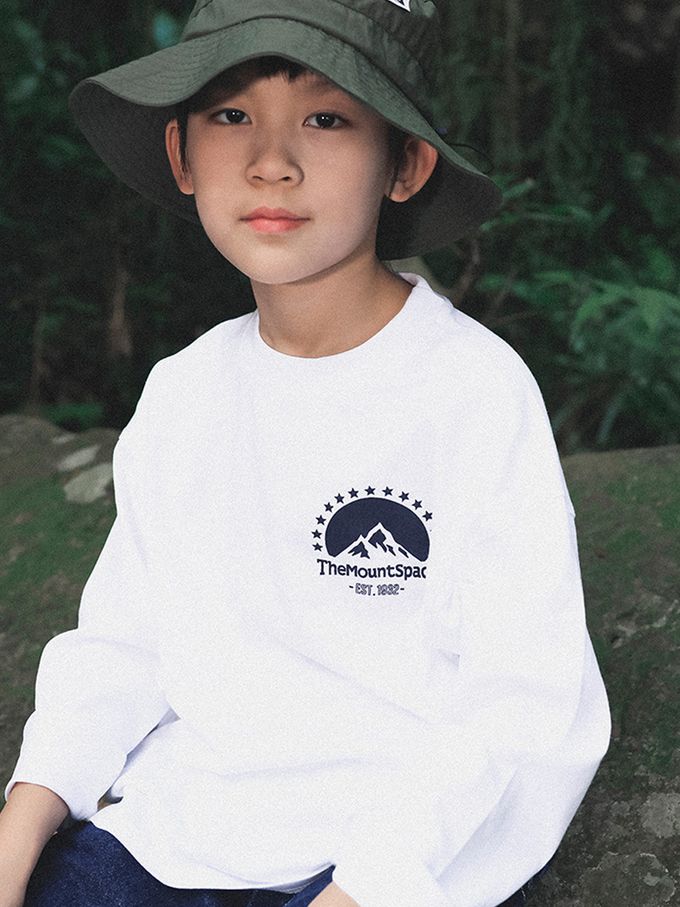 純棉圓領長袖上衣-簡約雪山-白色