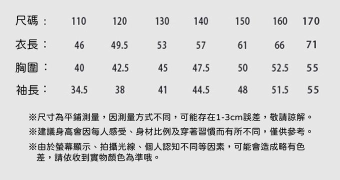 110cm、120cm、130cm、140cm、150cm、160cm、170cm