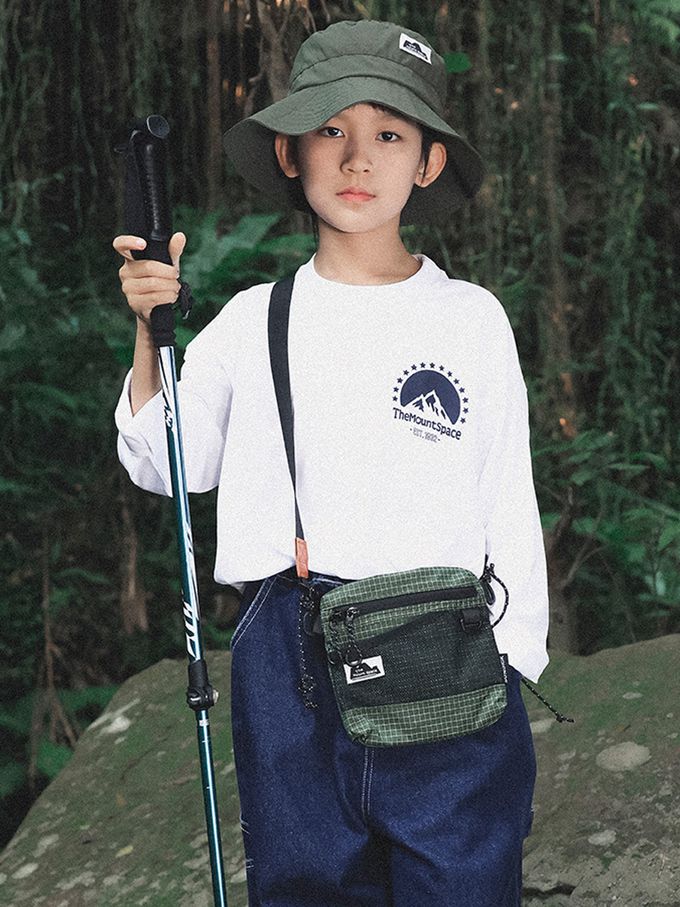 Y B S - 純棉圓領長袖上衣-一起去露營-拼袖杏