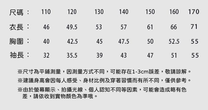 110cm、120cm、130cm、140cm、150cm、160cm、170cm