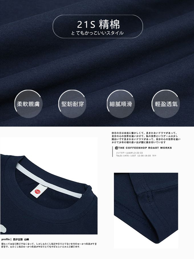 Y B S - 純棉圓領長袖上衣-一起去露營-拼袖黑