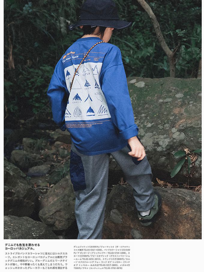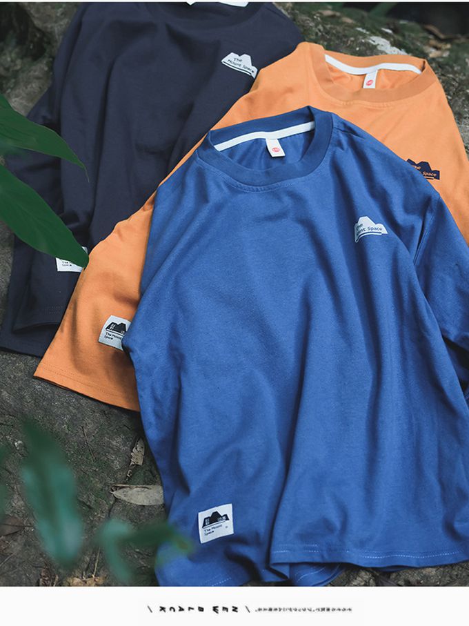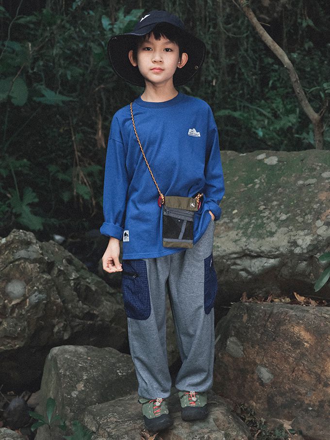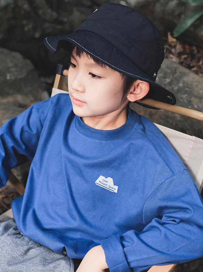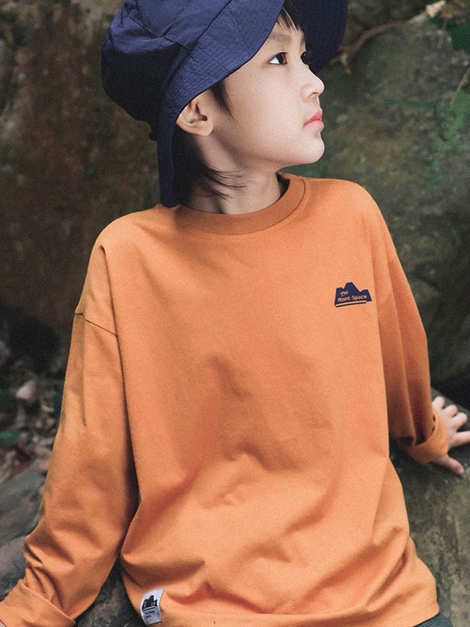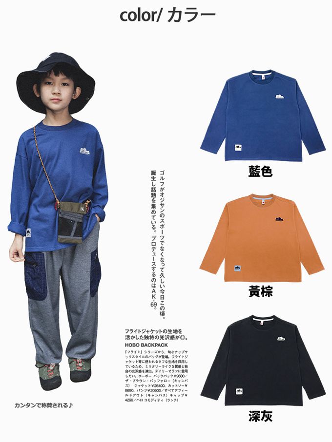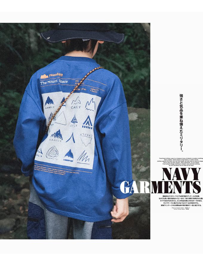 Y B S - 純棉圓領長袖上衣-一起去露營-拼袖杏