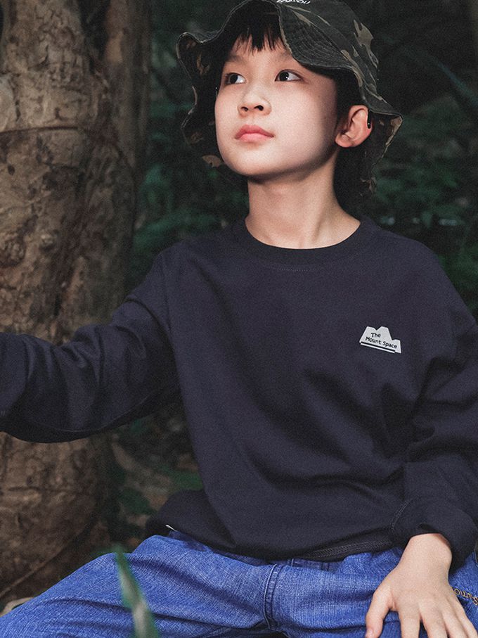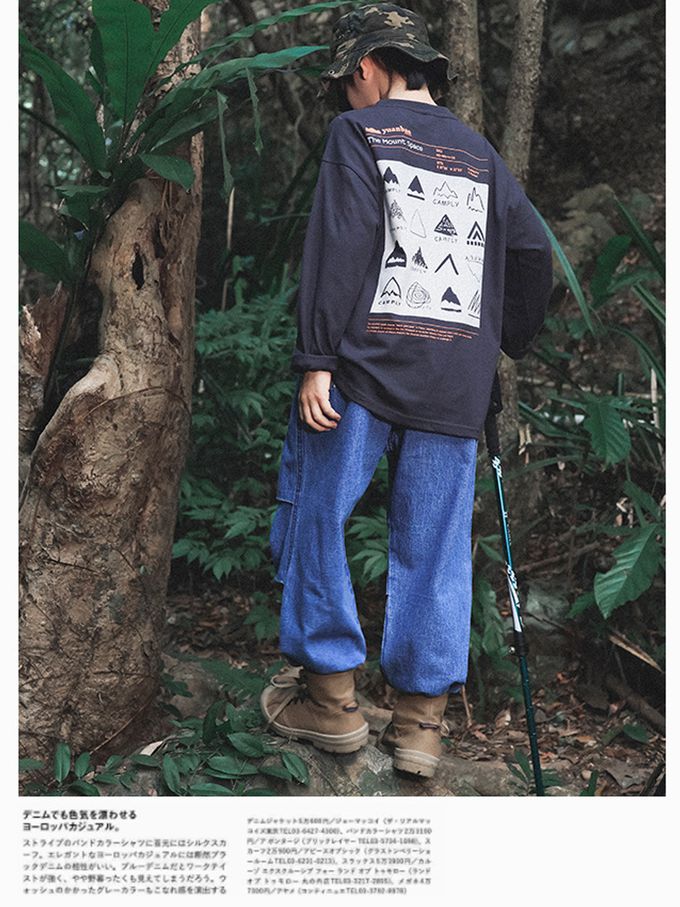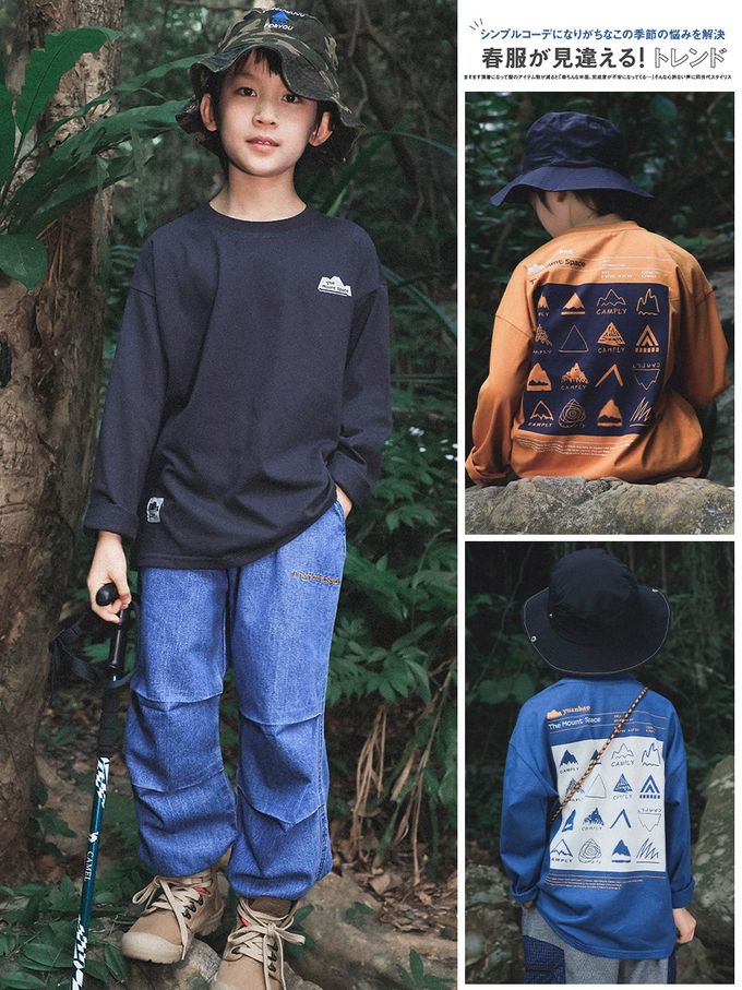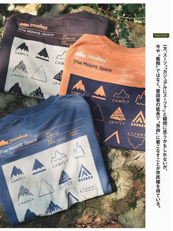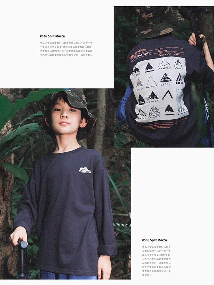 Y B S - 純棉圓領長袖上衣-一起去露營-拼袖杏