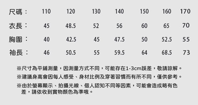 110cm、120cm、130cm、140cm、150cm、160cm、170cm