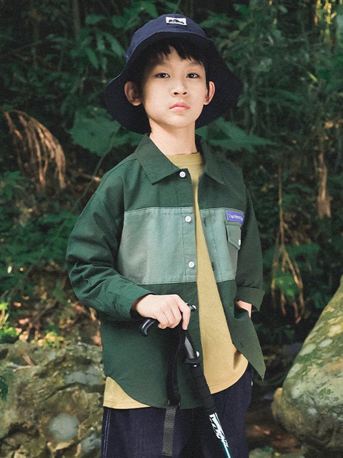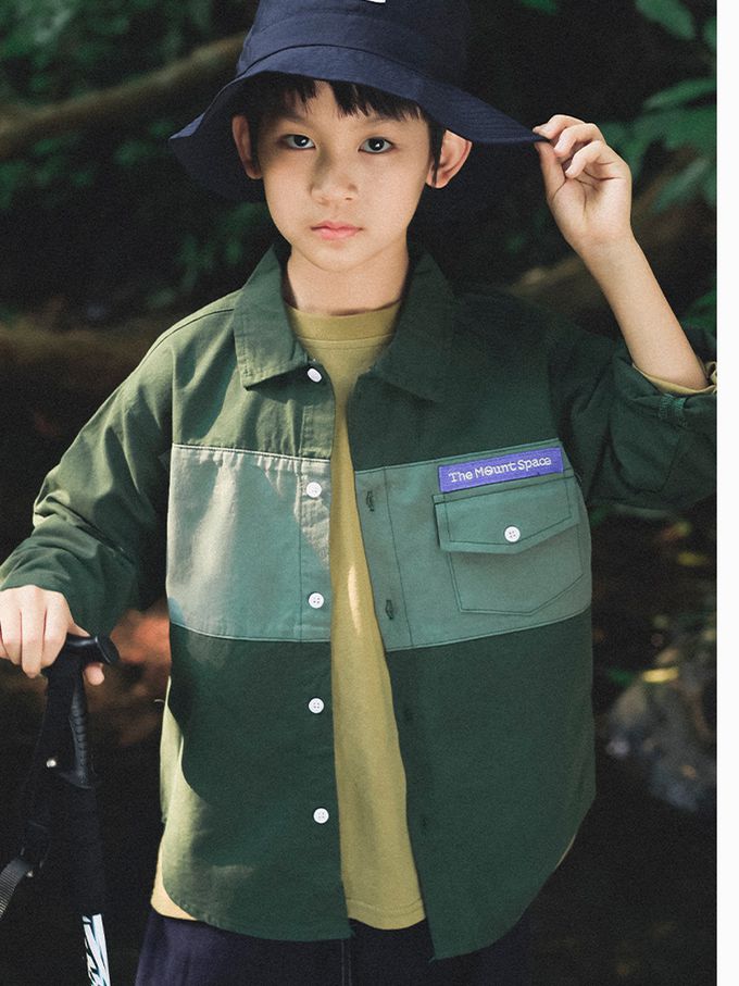 Y B S - 純棉拼色長袖襯衫-牛仔藍