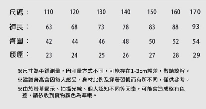 110cm、120cm、130cm、140cm、150cm、160cm、170cm