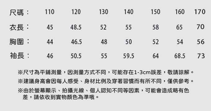 110cm、120cm、130cm、140cm、150cm、160cm、170cm