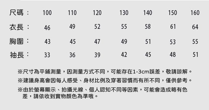 100cm、110cm、120cm、130cm、140cm、150cm、160cm