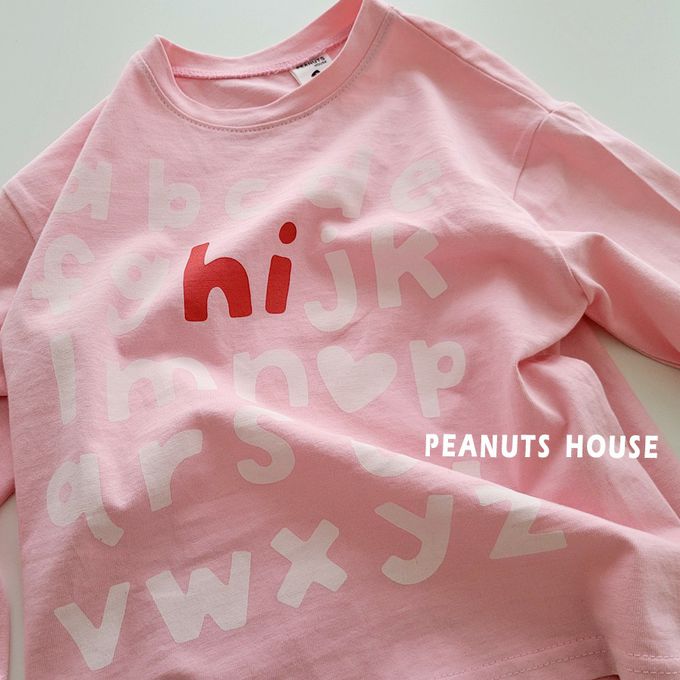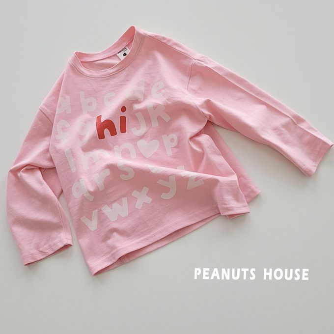 韓國南大門童裝 - Peanuts House 純棉長袖上衣-英文單字-粉