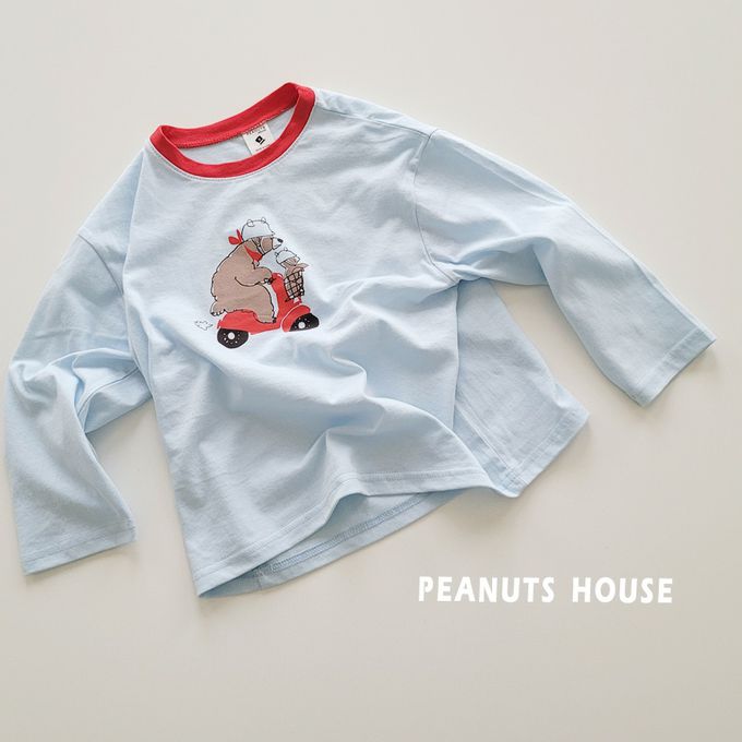 韓國南大門童裝 - Peanuts House 純棉長袖上衣-摩托車熊熊-淺天藍