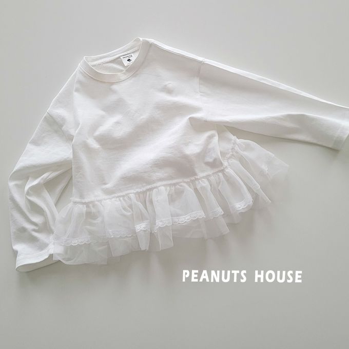 韓國南大門童裝 - Peanuts House 網紗拼接長袖上衣-白