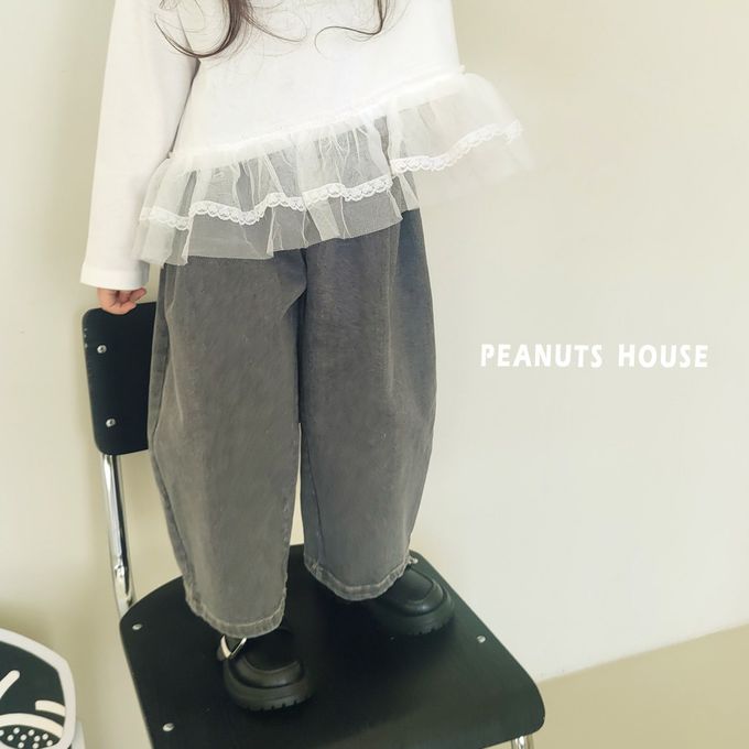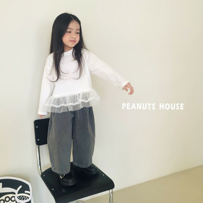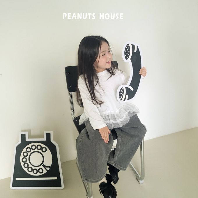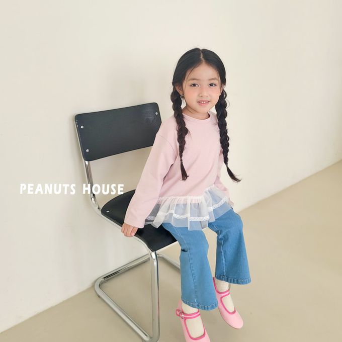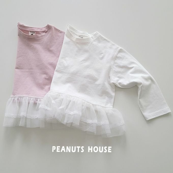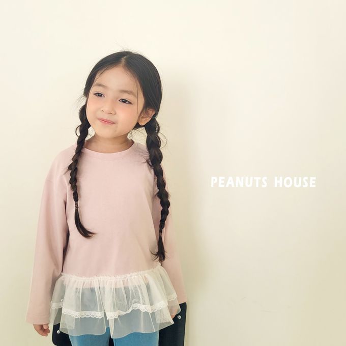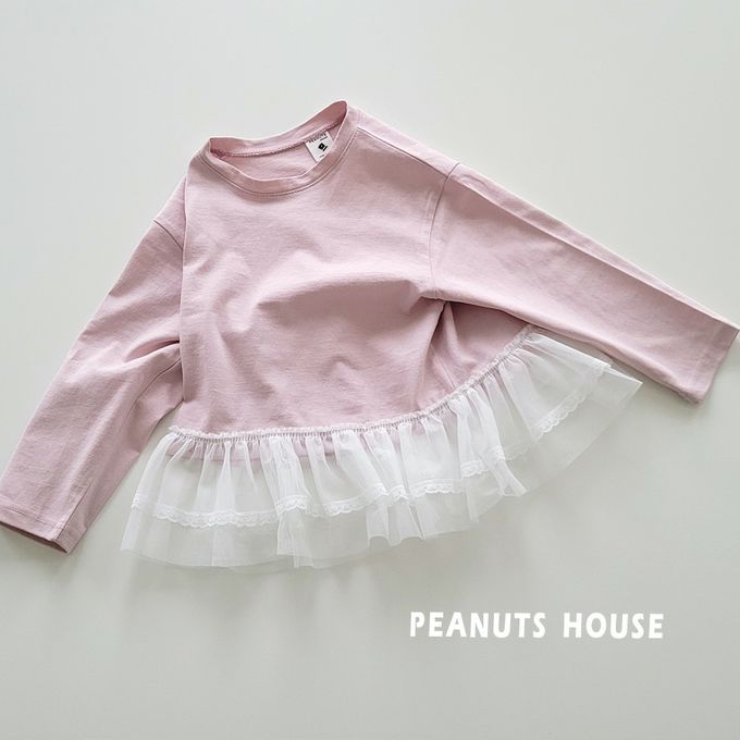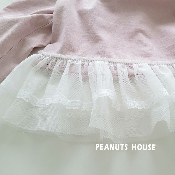 韓國南大門童裝 - Peanuts House 網紗拼接長袖上衣-淺粉