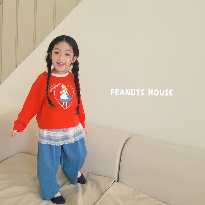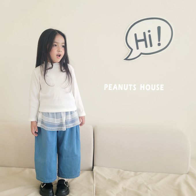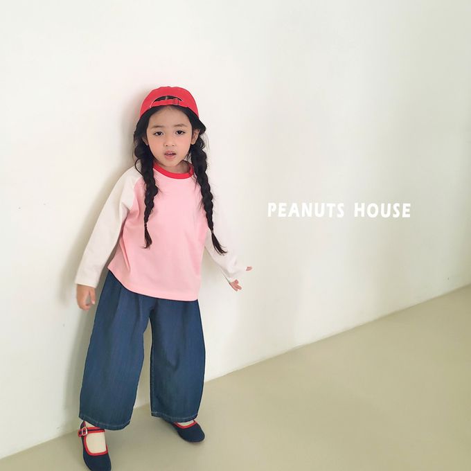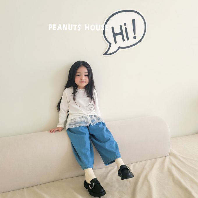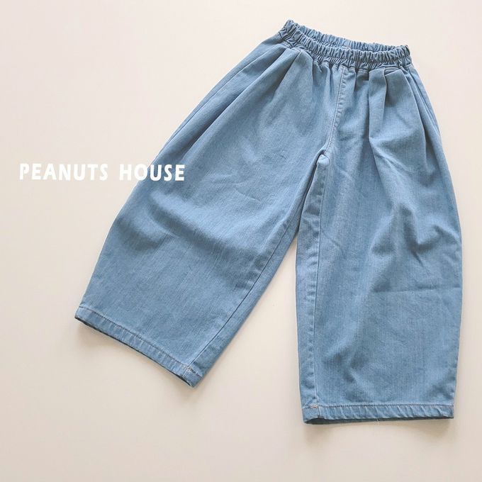 韓國南大門童裝 - Peanuts House 鬆緊腰抓褶感丹寧哈倫丹寧褲-淺藍