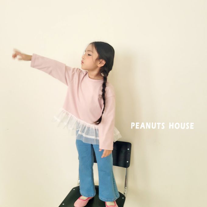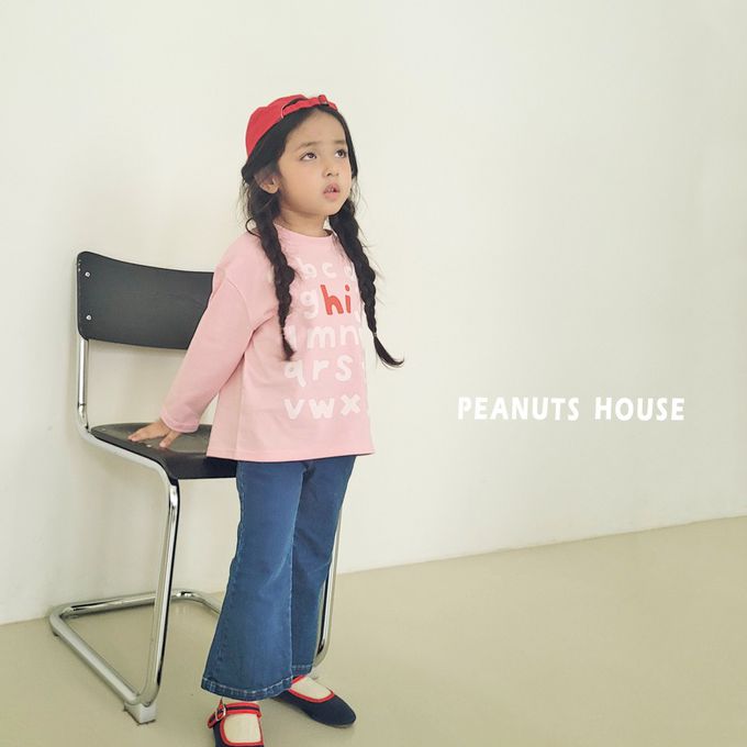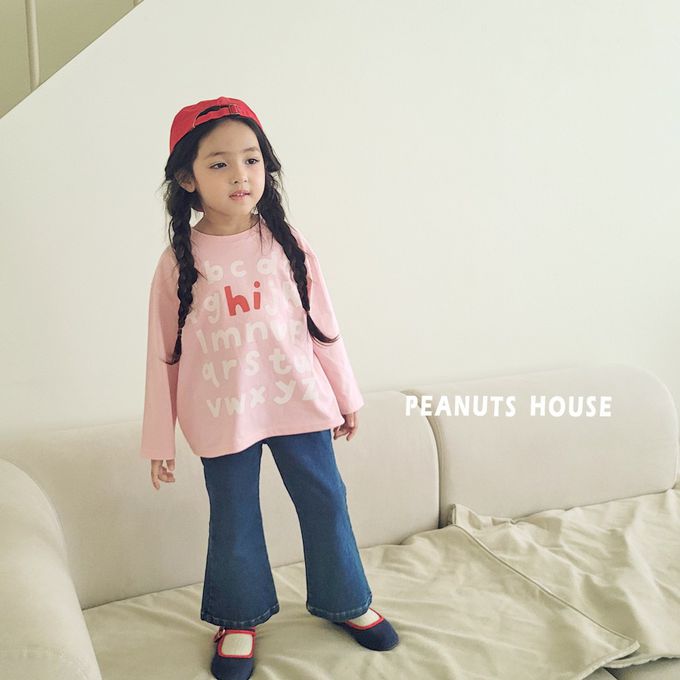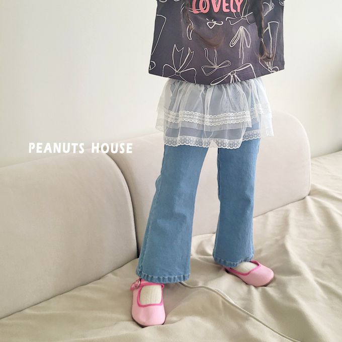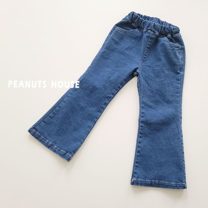 韓國南大門童裝 - Peanuts House 鬆緊腰百搭丹寧喇叭褲-深藍