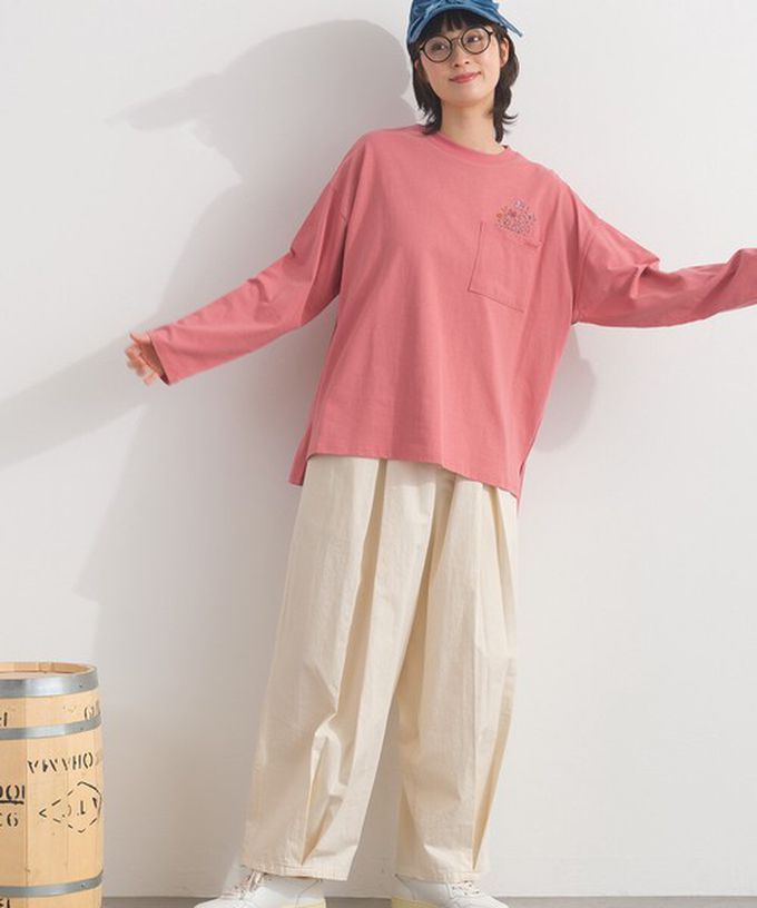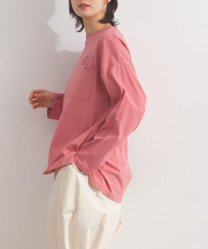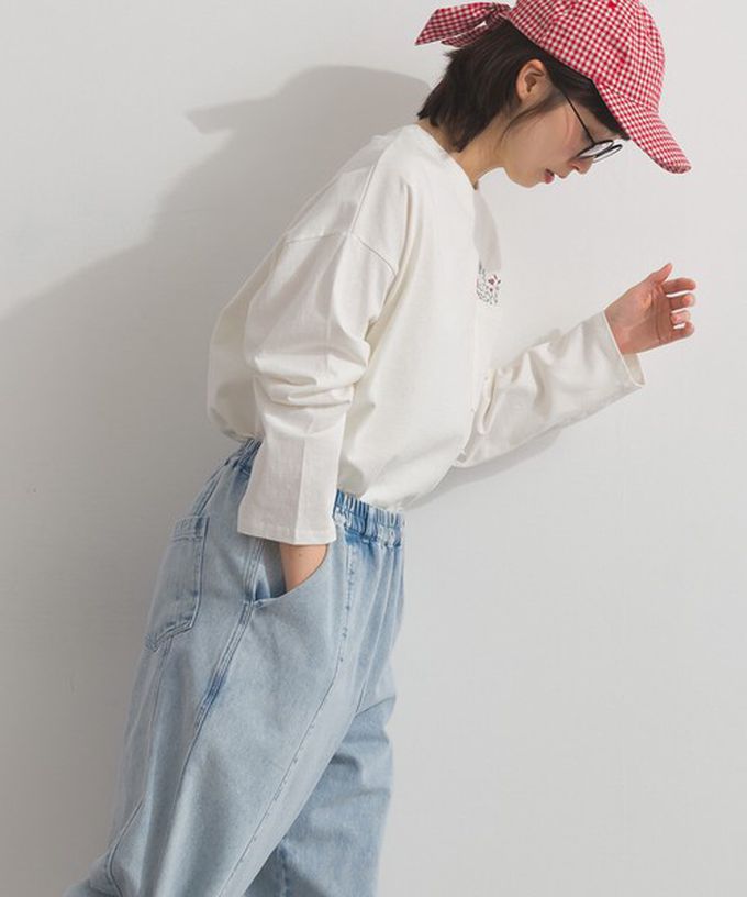 日本 Lupilien - 彩色刺繡花卉口袋純棉長袖上衣-白