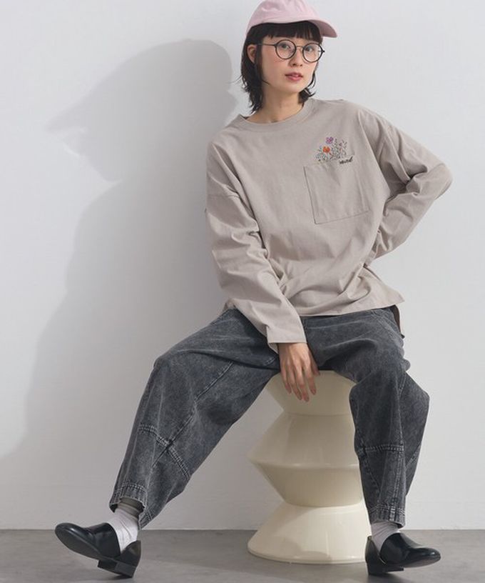 • 品名:彩色刺繡花卉口袋純棉長袖上衣