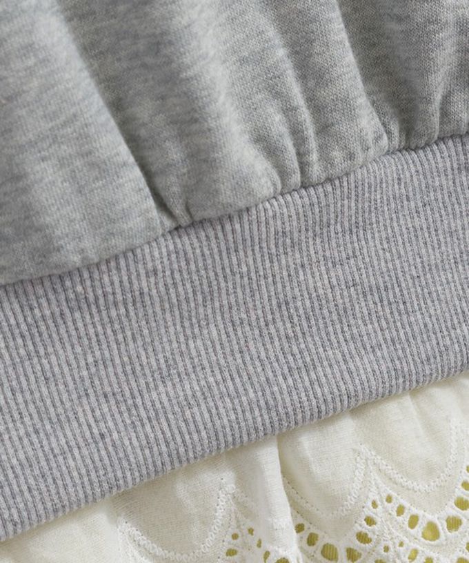 • 品名:貝殼蕾絲下擺俏麗層次感大學T