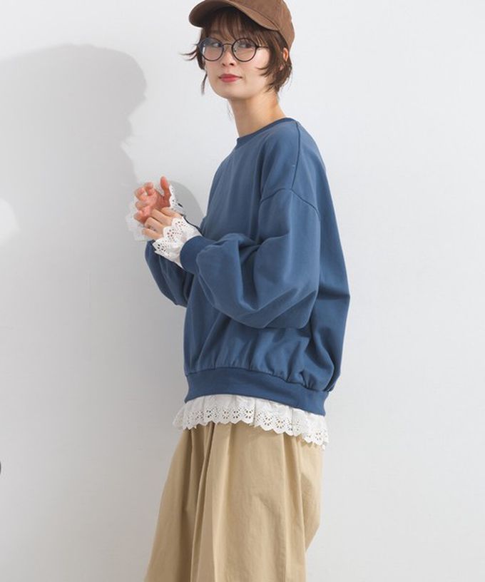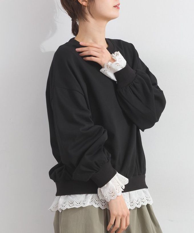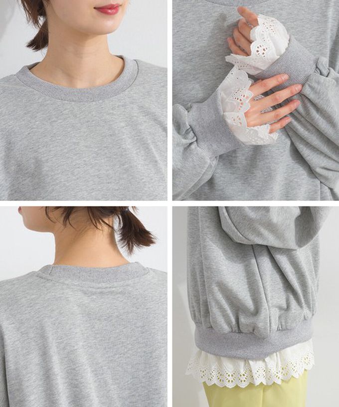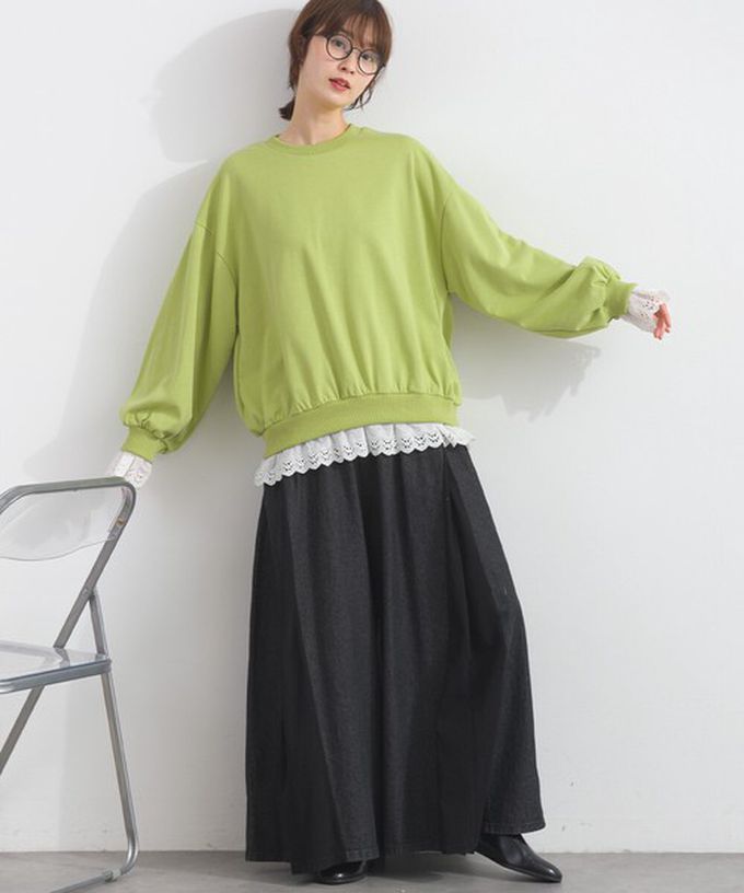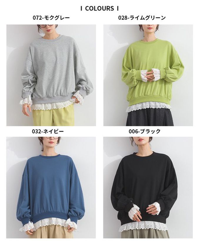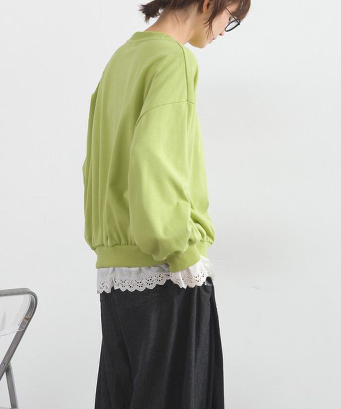 日本 Lupilien - 貝殼蕾絲下擺俏麗層次感大學T-蘋果綠