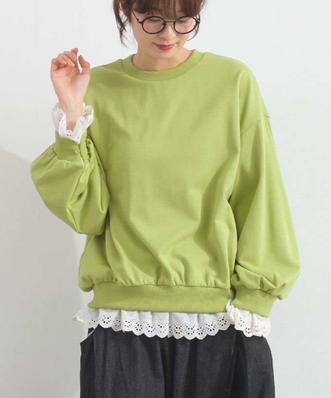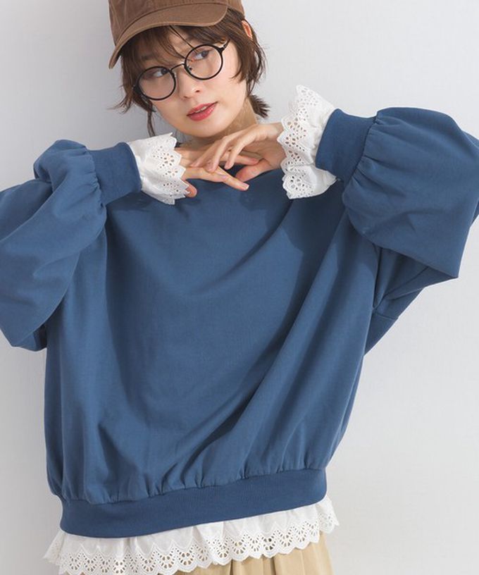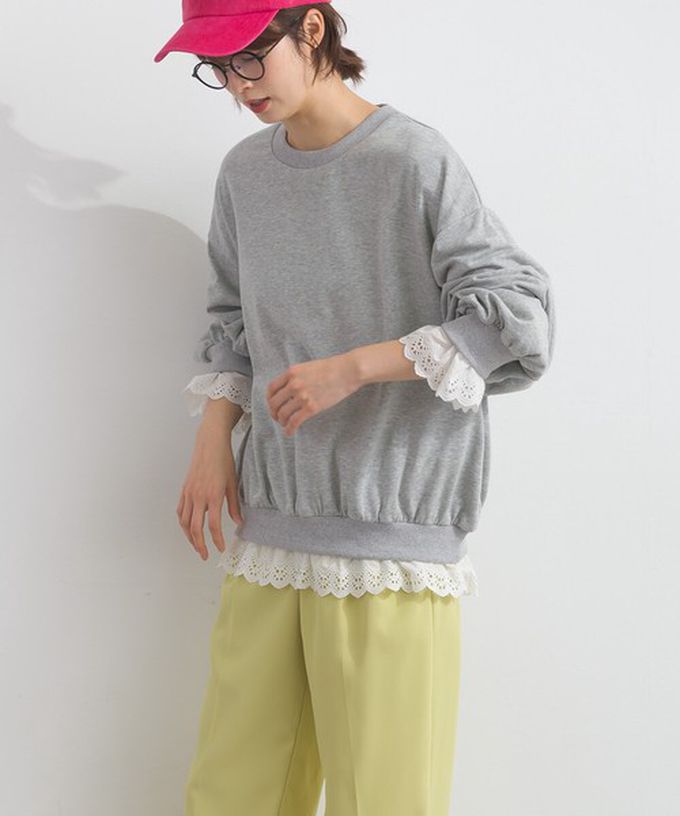 • 品名:貝殼蕾絲下擺俏麗層次感大學T