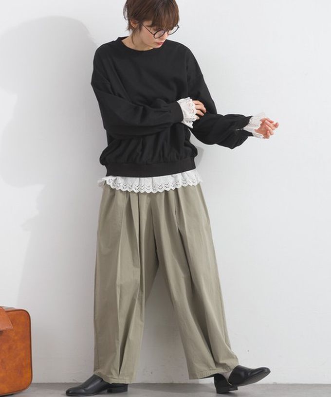 日本 Lupilien - 貝殼蕾絲下擺俏麗層次感大學T-黑