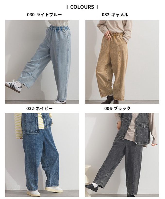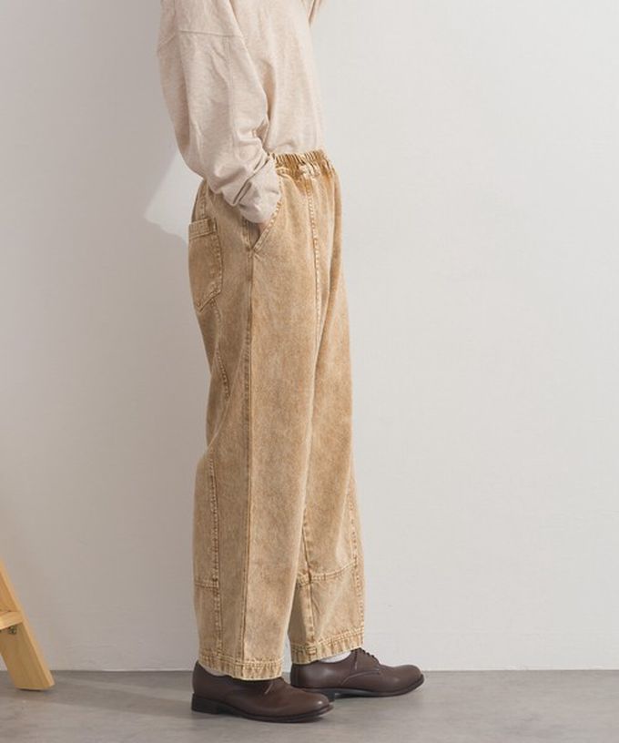 日本 Lupilien - 復古刷色感寬鬆丹寧繭型褲-焦糖棕