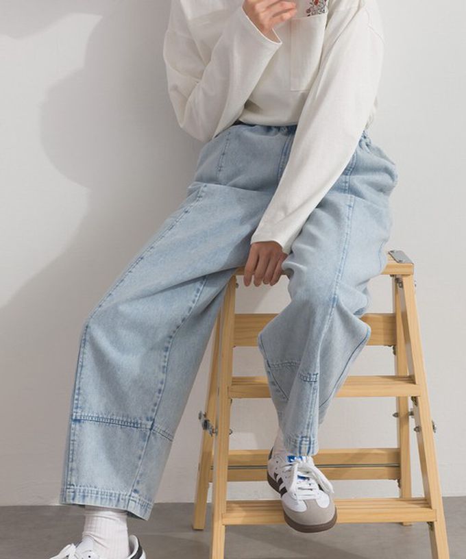 • 品名:復古刷色感寬鬆丹寧繭型褲