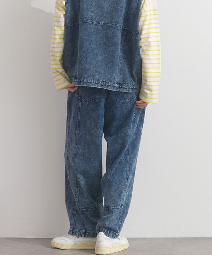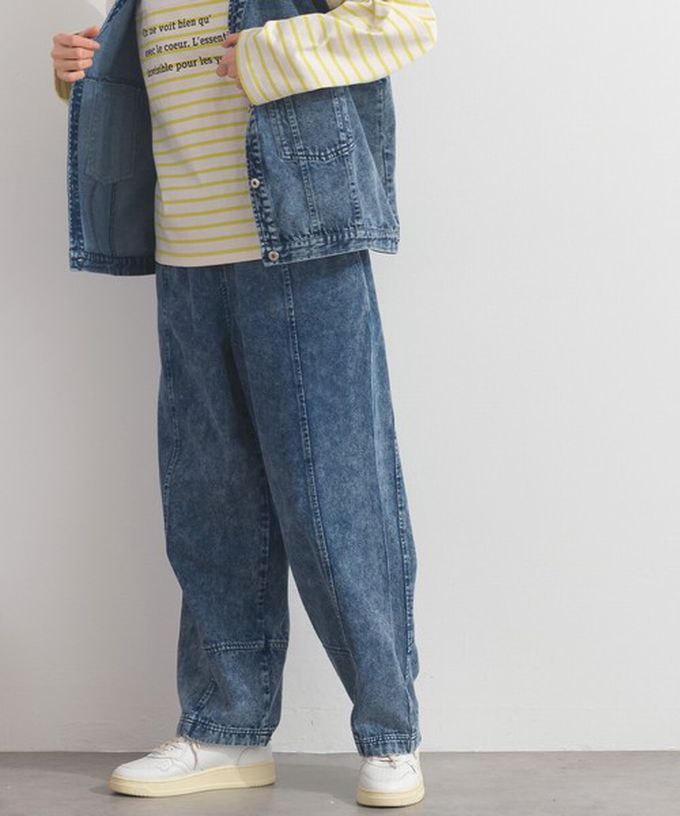 日本 Lupilien - 復古刷色感寬鬆丹寧繭型褲-海軍藍