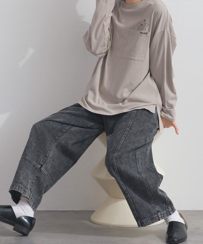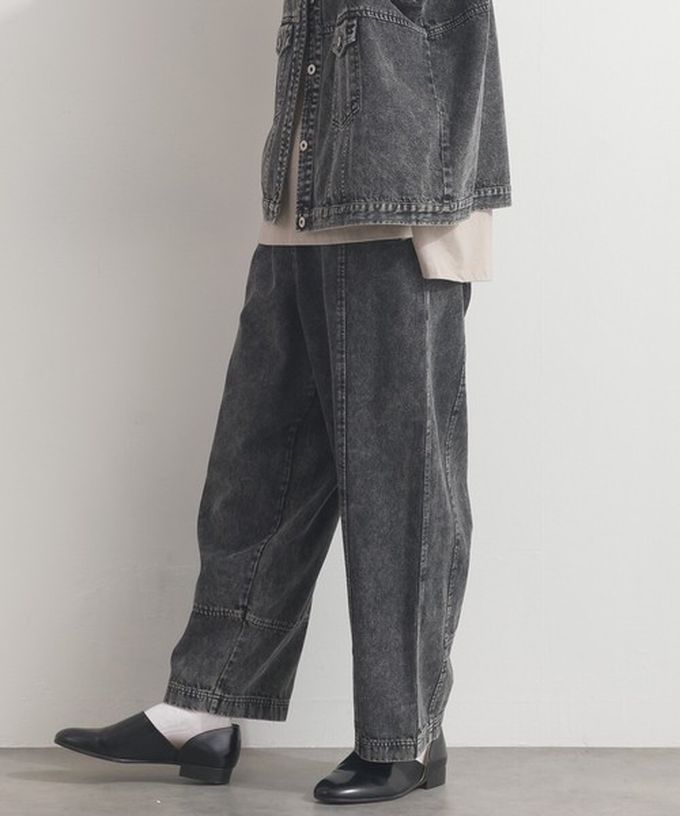 日本 Lupilien - 復古刷色感寬鬆丹寧繭型褲-霧黑