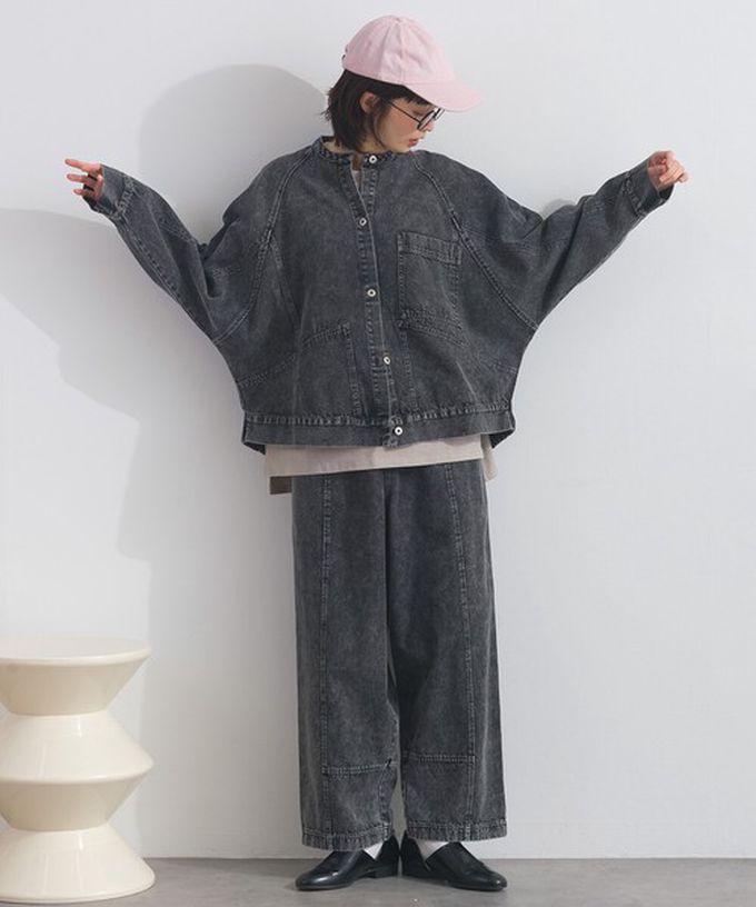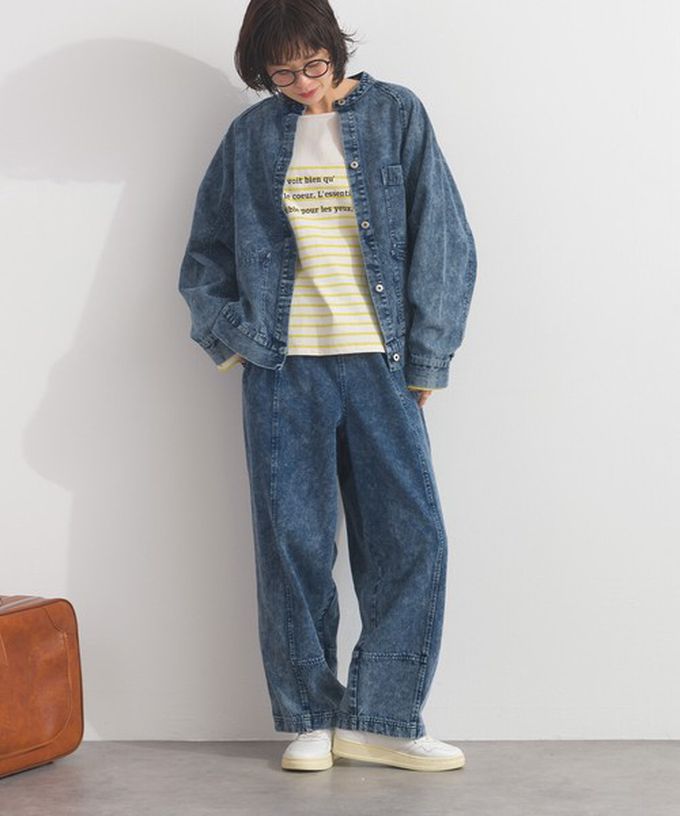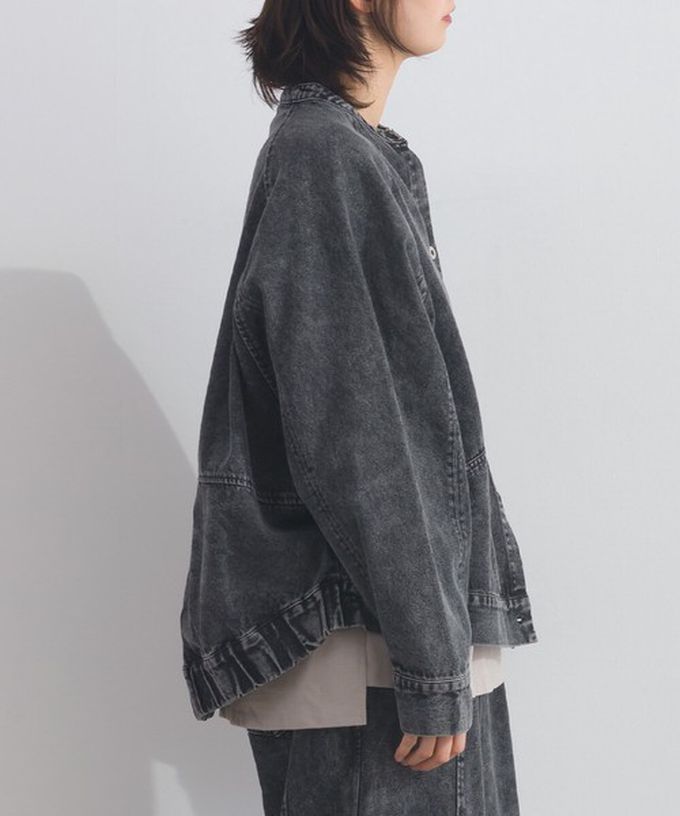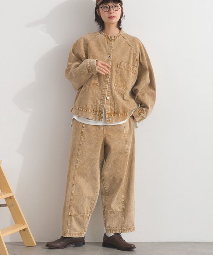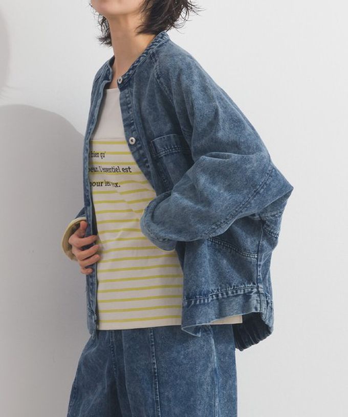 日本 Lupilien - 復古刷色感輕盈無領牛仔外套-焦糖棕