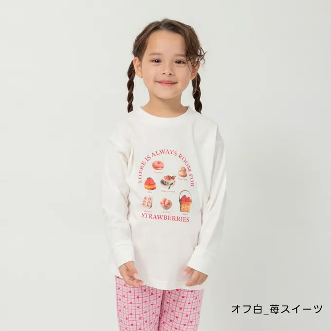 日本 BRANSHES - 100%棉 美味季節印花長袖上衣-可頌麵包-咖啡