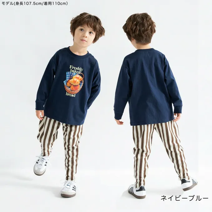 日本 BRANSHES - 100%棉 美味季節印花長袖上衣-可頌麵包-海軍藍
