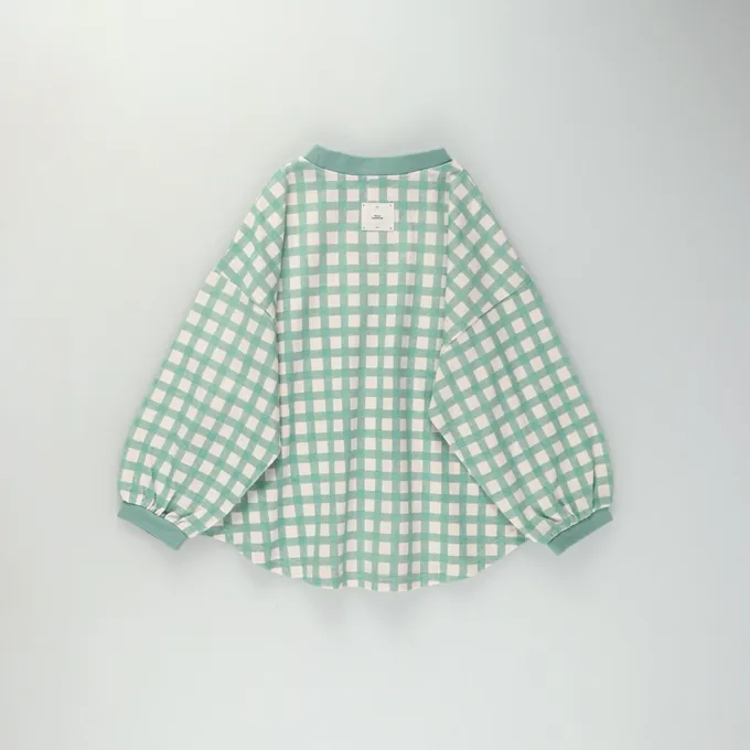 日本 BRANSHES - 圓弧下擺舒適縮口長袖上衣-棋盤格-藍