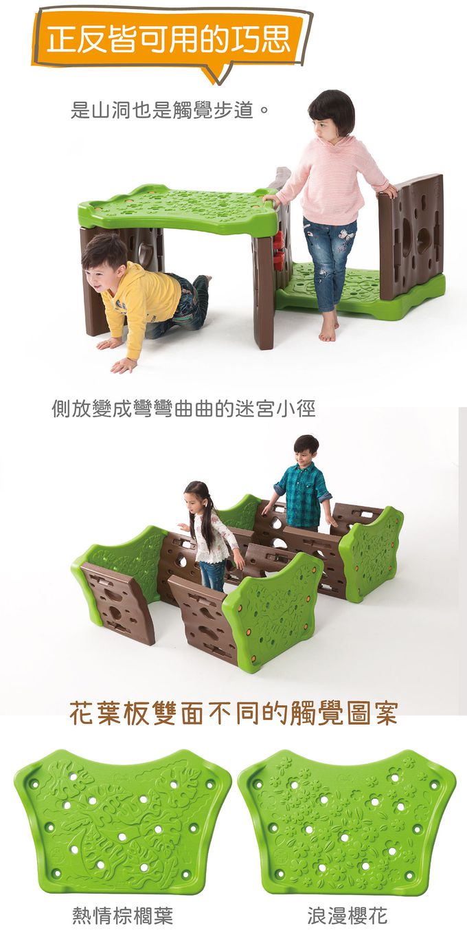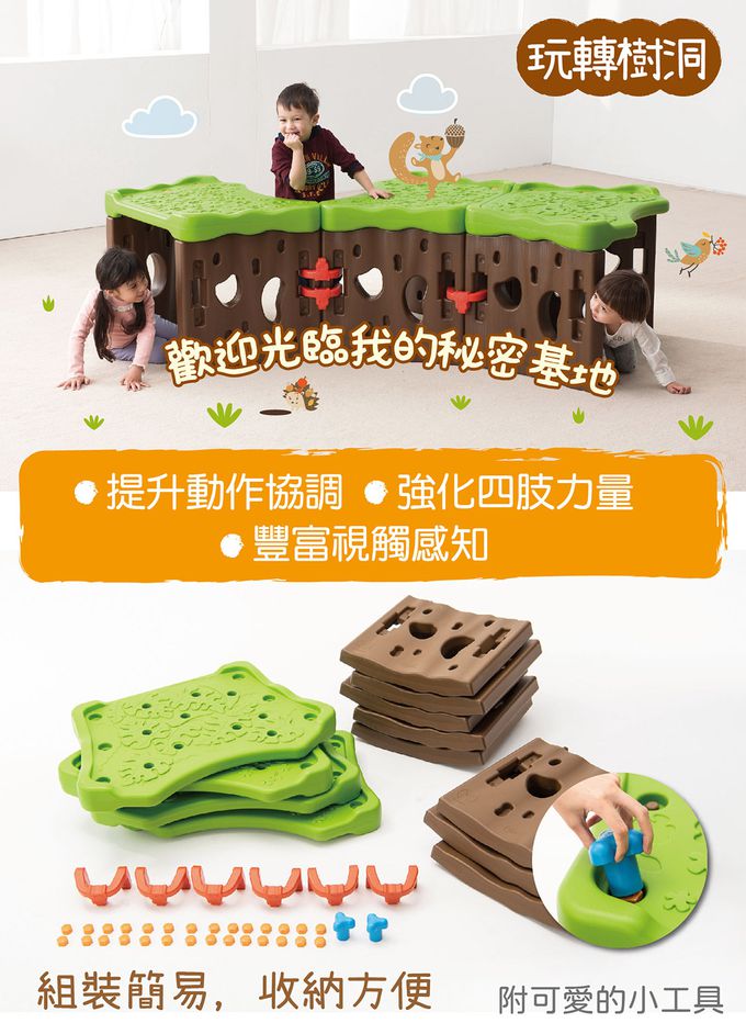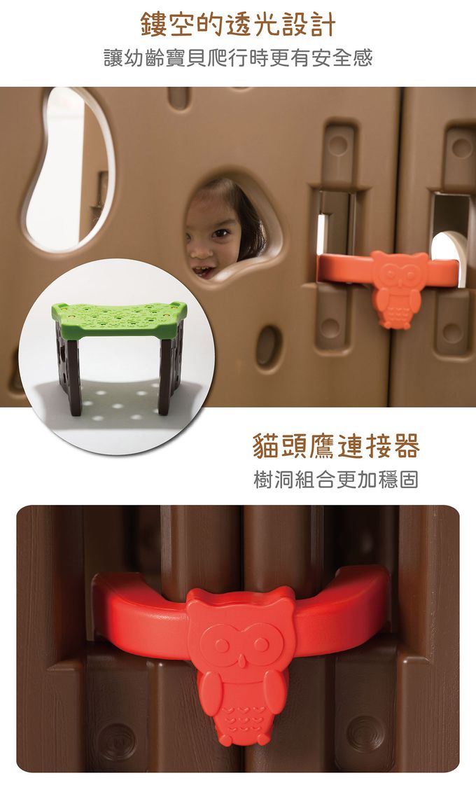 組件明細:側板(咖啡色)8片、花葉板(綠色)4片、螺帽(橘黃色)28個、貓頭鷹連結器6個、小花扳手2支。